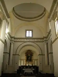 Le côté longitudinal (piedicroce) est greffé sur un presbytère à plan presque carré et couvert d'un dôme, avec deux absides semi-circulaires sur les côtés et une niche rectangulaire voûtée en berceau derrière le maître-autel. Aussi derrière l’autel, y avait-il une abside semblable aux autres, composant ainsi une salle tricora dérivée des modèles de l'antiquité tardive. L'allongement et la modification du chœur remontent à la fin du XVIe siècle. Les niches sont entourées d'arcatures à double virole moulurée, jusqu'à la ligne d'imposition.