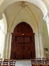 - Le tabernacle de l'autel de la Vierge, encadré de panneaux peints, datant de 1619[41] ;