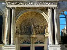 Alors que les travaux sont en cours, l'unique accès à l'église devient le portail du croisillon nord déjà mentionné. Cette circonstance incite le curé Bourcier d'entreprendre lui-même sa restauration et redécoration, mais il prend de telles libertés que le porche (devenu aujourd'hui oratoire) est exclu de la protection au titre des monuments historiques. Le bas-relief garnissant le tympan du portail du XIIIe siècle imite habilement le style de cette époque, mais est une création à part entière de l'abbé Bourcier, illustrant la légende de saint Christophe. Il est toutefois à noter qu'avant cette transformation, le portail n'était non seulement très dégradé, mais également marqué par des restaurations malencontreuses avec emploi de quantités de plâtre, si bien que l'œuvre du curé est à l'avantage du portail historique. C'est sur les autres parties du porche que l'authenticité du monument n'a pas été respectée[9],[19]. Le classement intervient par arrêté du [2], à l'exclusion de la façade Renaissance nord[20] classée ultérieurement par arrêté du [21].