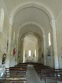 Elle comporte une nef unique, un faux-carré sous clocher et une abside semi-circulaire.