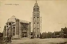 En 1925, on entreprend la construction d'une nouvelle église, la précédente ayant été détruite lors de la grande guerre. Le béton armé, matériel innovant à cette époque, est utilisé pour son ossature. Les parties ajourées du clocher de 51 m sont comblées avec des briques de sable et des parpaings de différentes couleurs.
