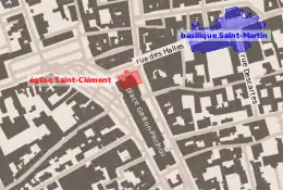 Dès le IXe siècle il existe à l'ouest de la basilique Saint-Martin de Tours un hospice destiné à accueillir les pèlerins et les malades nobles[4] ; sa chapelle est dédiée à saint Clément. En 1184 l'hospice a cessé toute activité et sa chapelle est devenue l'église de la paroisse Saint-Clément nouvellement créée[5] et citée dans une bulle du pape Luce III[6].