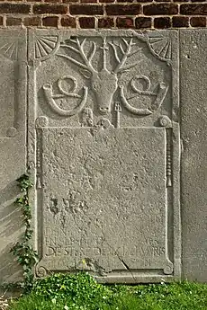 L'ancien cimetière paroissial est aujourd'hui transformé en jardin : de nombreuses pierres tombales ont été conservées et ornent maintenant les murs extérieurs de la nef de l'église[1].