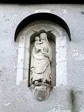 L'église, installée au flanc du coteau et partiellement construite sur une terrasse artificielle, est un édifice dont la nef unique est ouverte au niveau de son pignon nord par une porte en plein cintre décorée de rouleaux, de palmettes et de festons ; une seconde porte s'ouvre dans le flanc ouest de la nef[4]. Un clocher carré, dont la base date de la campagne de construction romane, est coiffé d'un étage faisant office de beffroi et daté du XVIe siècle[1] ; chaque face du beffroi est percée de deux baies dépourvues de tout ornement. Un beffroi gothique succède à la nef vers le sud-est sans interposition d'un transept[3]. Au sud du clocher et donnant dans le chœur, une chapelle du XVIe siècle a été construite[5].