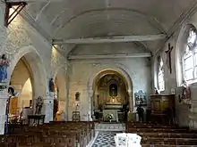 - Le tableau peint à l'huile sur toile représentant la Déploration du Christ mort, haut de 68 cm et large de 167 cm, datant de la fin du XVIe ou du début du XVIIe siècle. Il est inspiré par des œuvres d'Annibale Carracci[42] et de Jean Lepautre. Ce tableau n'appartient pas à la commune[43] (sans illustration).
