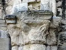 Chapiteaux gothiques et romans du pilier sud-ouest, et cul-de-lampe du XVe s.