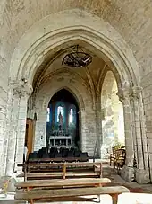 Arcade vers le chœur, s'appuyant à gauche sur un massif moderne.
