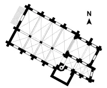 La nef a un seul bas-côté, à droite au sud. Le bas-côté à gauche au nord n'a jamais été construit.