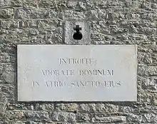 L'église est orientée est-ouest avec un accès via le porche, à l'ouest[a 4]. L'édifice est construite selon une croix grecque[a 4] c'est-à-dire que le transept et la nef possèdent la même longueur. Le porche d'accès (façade ouest) est surmonté d'une plaque indiquant « Introite adorate dominum in atrio sancto eius » (« Entrez, adorez le Seigneur dans son temple saint »)[a 4].