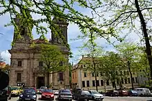 Le bâtiment précédent de l'église baroque actuelle était une église médiévale, construite au début du XIIe siècle. L'église du monastère remontait au Schottenkloster St. Egidien fondé à Ratisbonne, qui fut dissous en 1525. Les moines sont chassés par la Réforme et l'église passe au culte luthérien. Cette église était à l'origine une basilique romane à trois nefs et se retrouve probablement dans certaines parties de la chapelle eucharistique actuelle, qui n'a été voûtée qu'après 1200[1].
