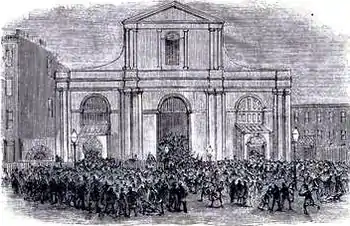 L'église d'origine a été fondée en 1851 par des jésuites du village de Fordham [1],[2] . Son sanctuaire d'origine, conçu par William Rodrigue, a été le théâtre d'une panique le lorsque quelqu'un a crié "Fire!" dans l'église pendant une messe; sept personnes sont mortes. Cette église a été démolie en 1878.