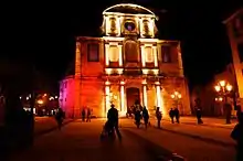 L'église a une nef et deux bas-côtés (de même hauteur que la nef), entourée de six chapelles latérales et deux chapelles entourant le chœur. Le clocher (en terrasse) est installé sur le côté sud pour éviter de réduire la longueur de l'église.