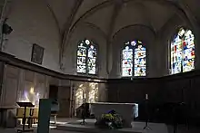 Dans le chœur se trouve un vitrail de la première moitié du XVIe siècle. Des scènes de l'histoire de Suzanne et les Vieillards y sont représentées. Suzanne, accusée d'adultère et condamnée à mort, est sauvée par le prophète Daniel.