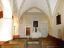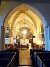 Chapelle baptismale, vue vers l'est dans la base du clocher.