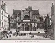 L'église est associée au tragique épisode de la Saint-Barthélemy. Dans la nuit du 23 au 24 août 1572, son tocsin est réputé avoir sonné l'alarme dans la ville et déclenché le massacre des civils protestants[18]. Il est à noter que ce tocsin fut sonné du clocher de l'église (petite tour au sud de l'édifice) et non du beffroi construit seulement au XIXe siècle entre l'église et la mairie du 1er arrondissement. Une des cloches, nommée Marie, datant de 1527, existe toujours.