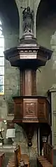 - Chaire à prêcher de 1805, œuvre de Le Genvre, ornée de bas-reliefs figurant les évangélistes, classée le [10]. L'ange sonnant de la trompette debout sur l'abat-voie est du sculpteur Molchnet (1825) à qui sont aussi dues les statues ornant le buffet d'orgue.