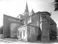 Le dernier clocher que supportait la croisée du transept était carré et a été démoli en 1883 vu son état. Il a été remplacé à la fin du XIXe siècle (1885 voire 1892) par un nouveau clocher, placé au nord de la nef.