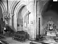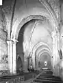 À la croisée du transept, légèrement désaxée par rapport au reste de l'édifice, se dessine une voûte d'arêtes avec un oculus fermé. Mais des faisceaux de colonnes sont collés aux quatre angles pour recevoir une croisée d’ogives (début XIIIe siècle), là où une coupole a peut-être été envisagée. Le reste de la nef a aussi été recouvert, à la même époque (début XIIIe siècle), de voûtes d'ogives dont les nervures retombent parfois maladroitement sur les chapiteaux qui sont romans. Le chœur et les bras du transept sont voûtés en berceau brisé et le chevet compte sept pans. Il n'y a aucune mention connue de l'existence d'une éventuelle crypte.