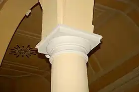 Chacune des colonnes est portée par un socle cubique en pierre bleue[1] surmonté d'un tore et est sommée d'un chapiteau toscan peint en blanc.