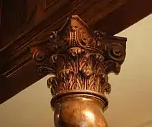 Les colonnes torsadées en bois de chêne qui soutiennent la tribune d'orgue font partie du mobilier baroque du XVIIe siècle qui provient de l'ancienne église des Augustins à Bruxelles, et qui comprend également les confessionnaux et la statuaire du chœur (Dieu le Père, anges)[1],[4]. Impressionnantes par leurs dimensions, ces colonnes sont surmontées de beaux chapiteaux d'ordre composite en chêne sculpté.
