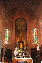 Le chevet, haut et imposant, est composé d'une travée de chœur et d'une abside semi-circulaire[3]. La travée de chœur et l'abside sont percées de fenêtres classiques en tous points semblables à celles des collatéraux.