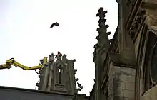 De nombreuses questions subsistent quant à la sauvegarde de l'orgue, principalement[14], mais aussi des gargouilles et de la grille, restée en bon état, qui entoure d'édifice. Si le coq et la croix surmontant la flèche du clocher ont été préservés[15],[16], le devenir de la tombe d'un prêtre, dans le chœur, fait débat de la même manière à la mi-février 2013[17]. Après la destruction du chevet, les ouvriers s'emploient, fin février 2013, à réduire progressivement la hauteur de la flèche du clocher au marteau-piqueur[18]. Mais les pierres qu'ils font tomber à l'intérieur heurtent de temps en temps la cloche, ce qui ne contribue pas, bien au contraire, à apaiser la polémique assez vive[19] créée par l'empressement municipal, jugé excessif, à diligenter la démolition sans avoir extrait de l'édifice l'orgue, la cloche, ni la totalité du mobilier[20],[21].