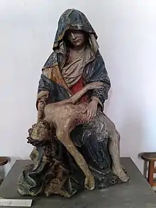 Une Pietà en bois polychrome du XVe siècle, seul reste[6] de l'ancienne église, se trouve au fond contre le mur Est, à gauche du cœur.