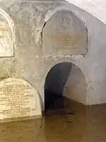 Derrière l'autel se trouve l'entrée d'une crypte où sont enterrés les membres de la famille Lazar et leurs héritiers[2].