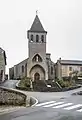 C’est une église couverte en ardoise avec un clocher carré. Elle associe styles gothique et néo-roman.