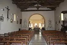 La nef mesure 10,20 m de largeur et atteint presque 10 mètres de haut. Elle a été recouverte d'un faux plafond en 1867 qui fut enlevé en 2003 pour faire réapparaître la charpente[2]. C'est durant cette même année que le carrelage fut restauré et les murs repeints. Au total, la longueur intérieure de l'ensemble nef, chœur et abside atteint 31,5 mètres.