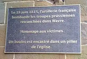 Le , l'église fut prise dans le feu de la bataille de Wavre : un boulet de canon français est encastré dans un de ses piliers[2] (voir plus loin).