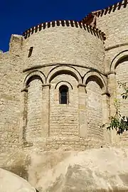 L'église possède un impressionnant chevet roman à triple abside orné d'une très belle polychromie[4].