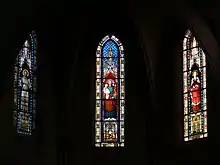 Sur le bas-côté droit, sont disposés cinq vitraux réalisés en 2005 par Kim En Joong, artiste dominicain de nationalité coréenne.
