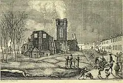 Le , la foudre frappe la flèche et provoque un incendie qui ravage l'ensemble de l'édifice. Seuls la tour, le portail d'entrée et le chevet ont pu être conservés, ainsi que la chapelle dite « de la bonne mort » (XVIe siècle).