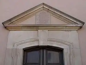 Rénovée par le sculpteur Raymond Keller de Molsheim à l'occasion du bicentenaire de l'église, l'inscription figurant sur cette plaque carrée évoque l'édification de l'église, mais célèbre surtout le seigneur de Falckenhayn :