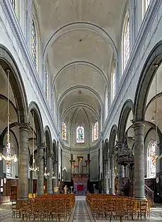 Reconstruite dans un style très proche de l'église détruite pendant la guerre, la structure de l'église actuelle n’est plus en pierres mais en béton armé.