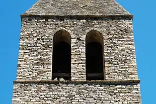 Le clocher est couronné d'une courte flèche pyramidale couverte de lauzes.