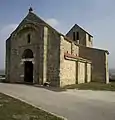 Le clocher dont la base est romane possédait une flèche qui n'existe plus aujourd'hui[2]. Il est couvert de petites tuiles plates, contrairement au toit de l'église couvert de tuiles canal[2].
