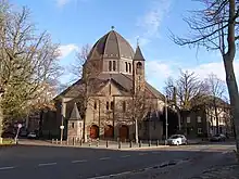 En raison de la rapide expansion urbaine des années 1920, l'église est rapidement devenue trop petite. Une nouvelle église, l'église actuelle, est construite en 1924[2], avec une maison regroupant le presbytère et la maison des œuvres paroissiales (Aloysiushuis); elle sera démolie en 1975.