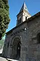 C’est une église romane à trois nefs avec abside et deux absidioles et un clocher carré du XIXe siècle. Le porche, en face sud, se caractérise par une double archivolte en plein cintre à moulure portée par quatre colonnettes avec chapiteaux à feuilles.