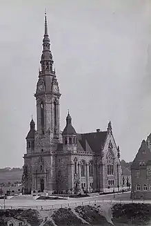L'église est construite de 1898 à 1903 selon les plans de l'architecte Georg Weidenbach. Elle est consacrée le . Dans la clocher de 83 mètres de haut, se trouvent quatre cloches en bronze de la fonderie Bierling, fondues en 1917. L'intérieur reçoit une peinture dans le style Art Nouveau d'Otto Gussmann. L'orgue est installé en 1901 par la facture Jehmlich et est inutilisable pendant de nombreuses années après la Seconde Guerre mondiale.