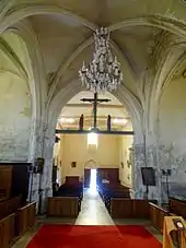 - L'unique lustre, suspendu au milieu du chœur, est en laiton et verre taillé, et orné de nombreuses pampilles. Il date du XIXe siècle, et est inscrit depuis [40].