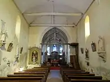 L'église renferme quarante éléments de mobilier classés ou inscrits monuments historiques au titre objet[9]. Les différents objets concernés se répartissent, pour l'essentiel, sur les domaines de la sculpture, de la peinture, du vitrail, et du mobilier liturgique et associé, jusqu'aux bancs de fidèles et les rangements de la sacristie.