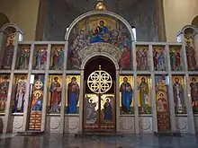 En avril 2023, la décoration intérieure n'est pas achevée. Toutefois, les quelques représentations que l'on peut admirer sur les murs sont de magnifiques mosaïques de style byzantin. L'iconostase est, elle aussi, faite de mosaïques.