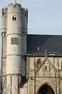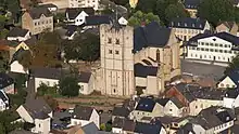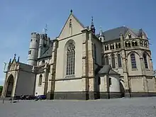 Cette basilique à toit en terrasse fut remplacée entre 1225 et 1322 par l'actuelle église gothique. On remania d'abord le chœur, un des plus beaux exemples de chœur polygonal pré-gothique de Rhénanie, avec ses absides latérales aux formes du roman tardif du XIIIe siècle. Puis le transept et la nef ont été réalisés dans un style plus nettement gothique. Le triforium gothique, avec ses merlons et oriels, n'a été aménagé qu'au XIVe siècle. Le rehaussement des tours jusqu'à quatre étages était indispensable pour former le nouveau clocher. C'est ainsi que les anciens abat-sons, encore reconnaissables aujourd'hui, ont disparu sous les combles. L'église a été consacrée en 1322 par l'archevêque Baudouin de Trèves.