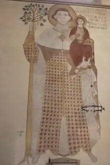 - Un tableau représentant Saint Christophe avec l'Enfant au bras gauche, haut de 8 m, date du XIIIe siècle, et se trouve sur la cloison nord du transept.
