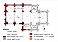 | Autres campagnes de travaux | dernier quart XVe siècle (chapelle servant de sacristie) ; 2e quart XVIe siècle (bas-côté et voûtement de la nef) | |||