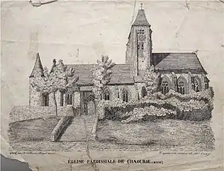 Église du XIIIe siècle ; abside circulaire ; fenêtres ogivales divisées en deux et trois parties, par d'élégantes colonnettes ; porte latérale ornée de sculptures aujourd'hui mutilées. Clocher élevé et percé de meurtrières ; carrelage du chœur d'une rare beauté, provenant de la Chartreuse du Val-Saint-Pierre ; Maître-autel en marbre, avec dôme soutenu par six colonnes au-dessus d'un tabernacle prismatique tournant pouvant présenter trois faces. L'autel est de 1745, et le tabernacle de 1788[6].