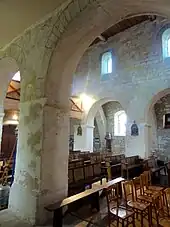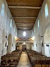 Intérieur, vue vers l'est ; à gauche, la sacristie.