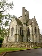 Vue rapprochée depuis le sud ; à gauche, le chevet.